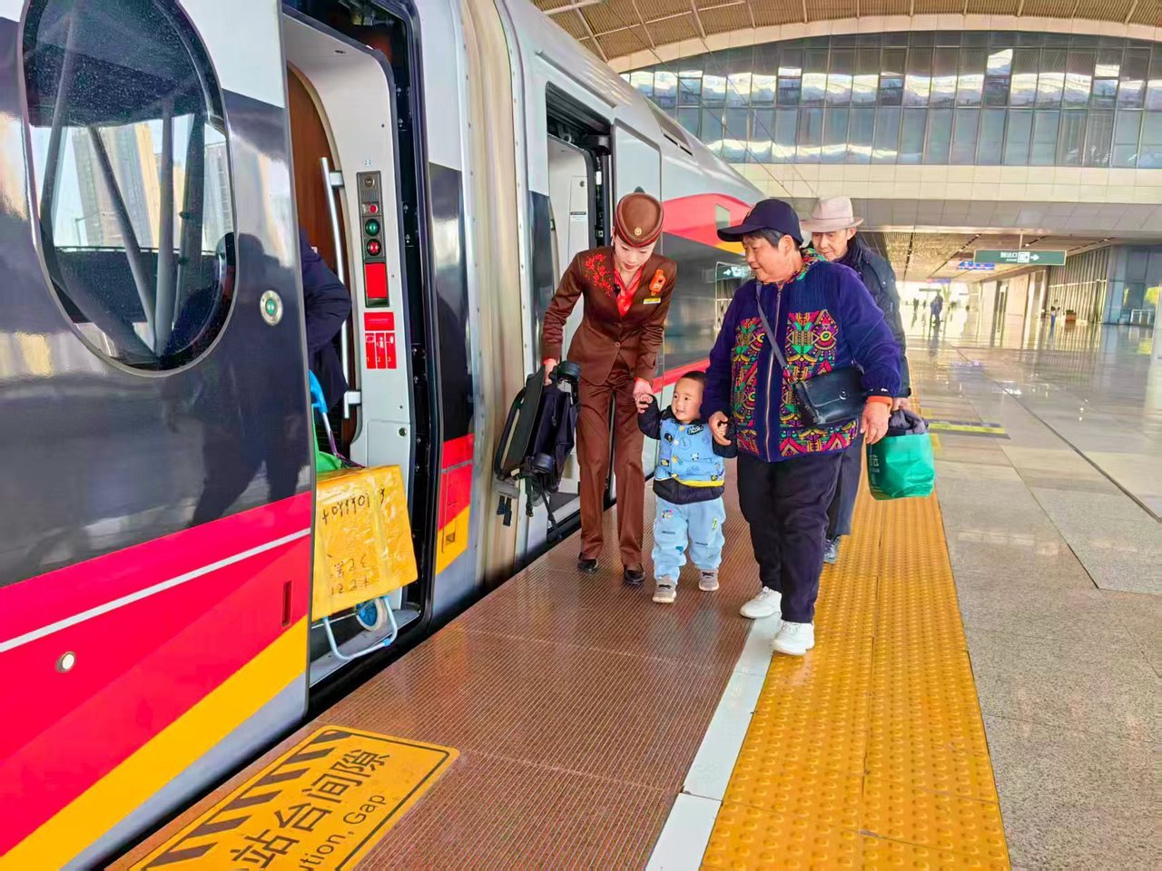 在此基础上,武铁还细化服务举措:充分发挥武汉、汉口、襄阳东站中转换乘快速通道作用,提高换乘效率;武汉车站构建“一处受理全站联动,一站受理多站联动”服务链条,重点帮扶“银发旅客”与“脱网”人群;汉口车站升级重点旅客候车区,增设空铁联运服务点与自助值机设备;襄阳车站依托“襄遇 1080”服务品牌,为老弱病残孕旅客提供帮扶并联动公交优化接驳;武汉、襄阳客运段发挥“凤舞楚天”“龙韵骧梦”服务品牌的示范引领作用和党员的先锋模范作用,在列车配备小药箱、便民服务袋等物资,对重点旅客实行“全程无忧服务”。